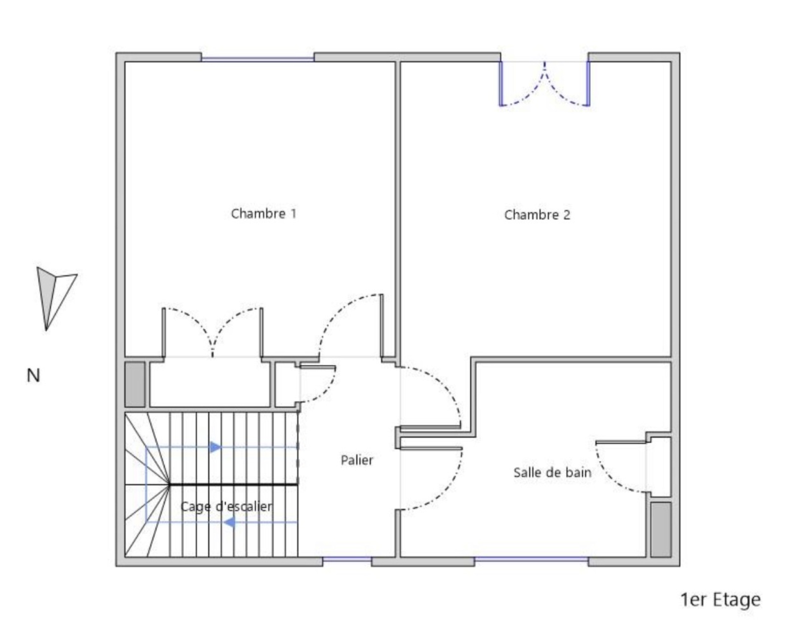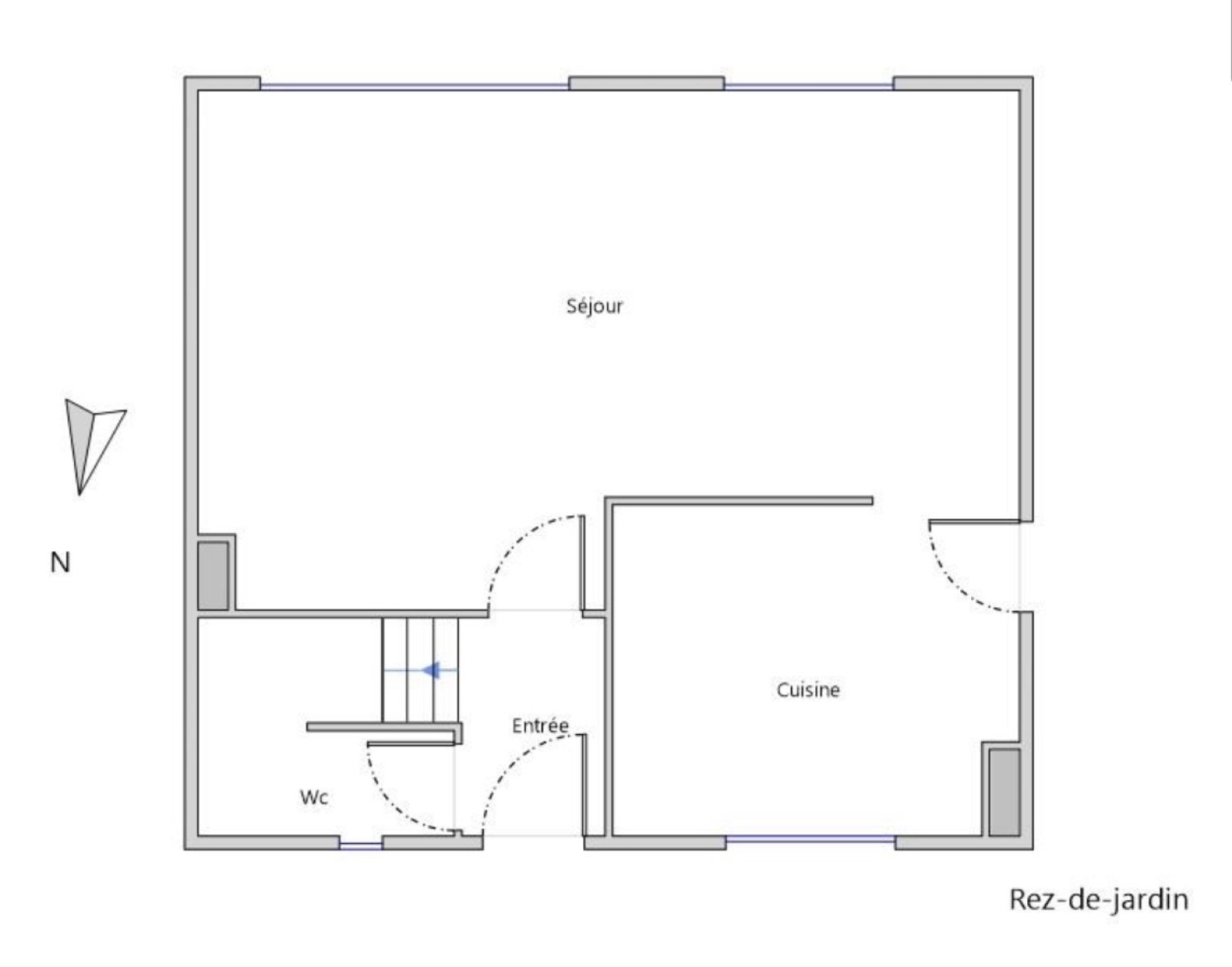 Au rez-de-chaussée, une pièce de vie traversante, lumineuse grâce à de larges ouvertures, accueille une cuisine ouverte tournée vers l’extérieur. WC indépendants à ce niveau.