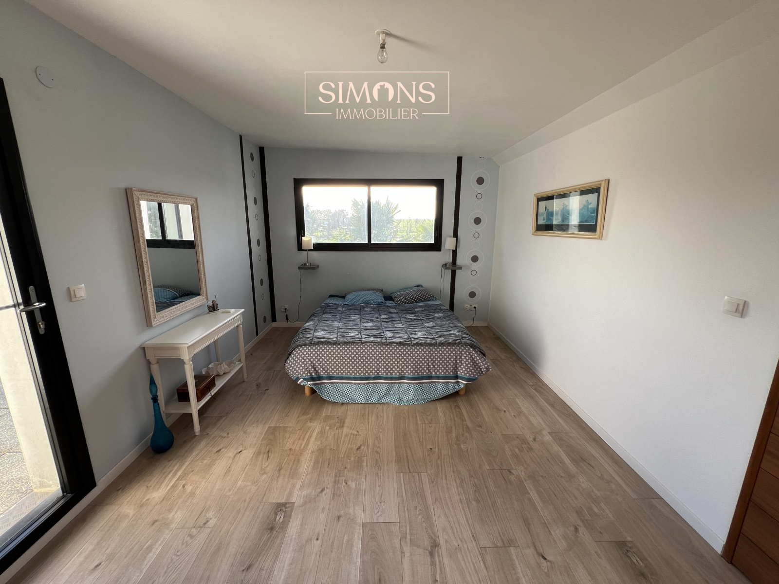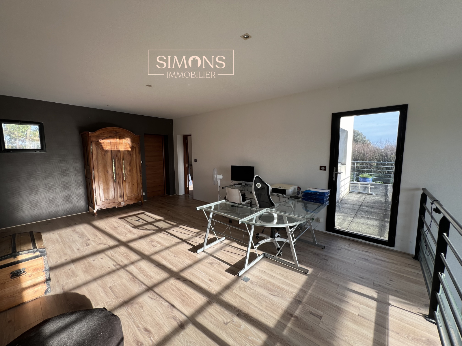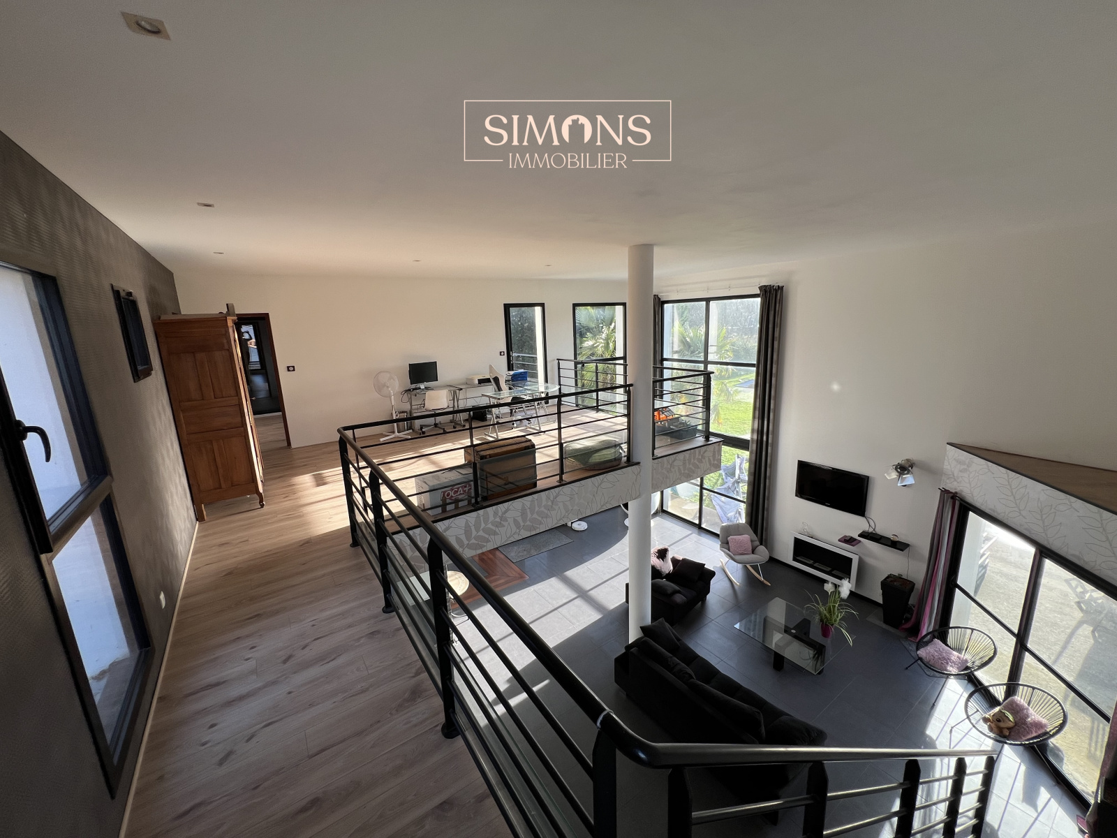 À l'étage, découvrez une vaste mezzanine de 30 m², donnant accès à une suite parentale comprenant une grande chambre, une salle de bain spacieuse, un WC indépendant et un dressing appréciable.